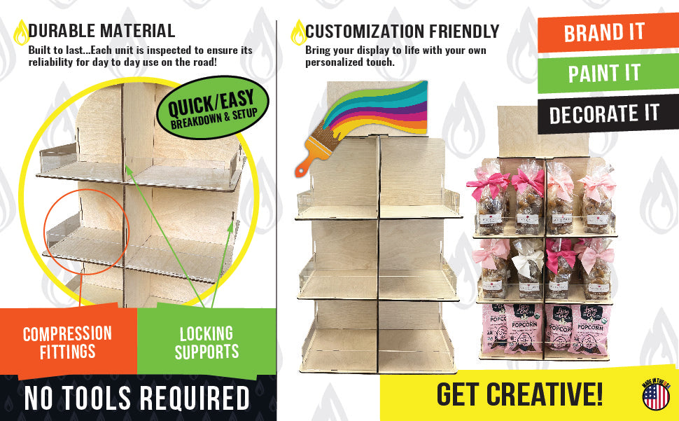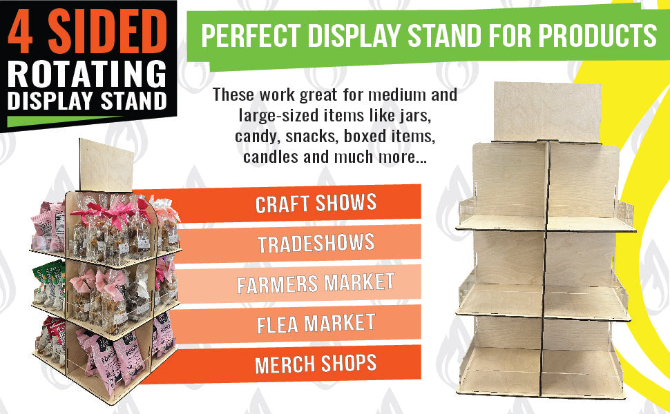If you're looking to enhance your booth setup and increase your sales, the 4-Sided Rotating Display Stand is a must-have addition. Order yours today and watch your sales soar!