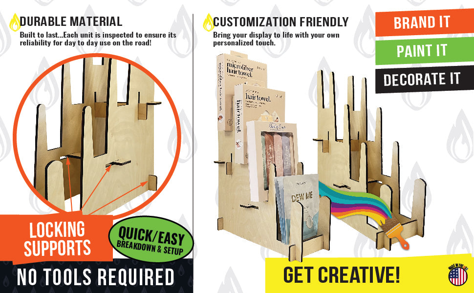Elevate your display game with our wood display stand and impress your customers with a professional and visually appealing presentation that sets your products apart. Order now and take your trade show, farmers market, or event display to the next level!