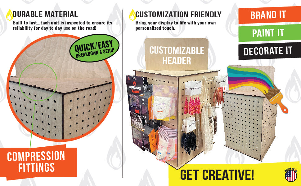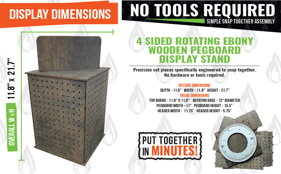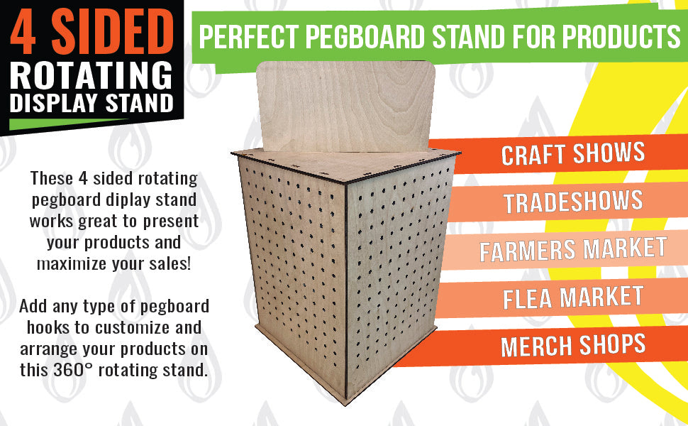 Introducing the Torched Displays Rotating Display Stand – a dynamic and versatile solution for optimizing your product presentations. This 22.5 x 16.76-inch Rotating Organizer boasts a wood pegboard design that's perfect for craft shows, vendor events, and the showcasing of jewelry and accessories.