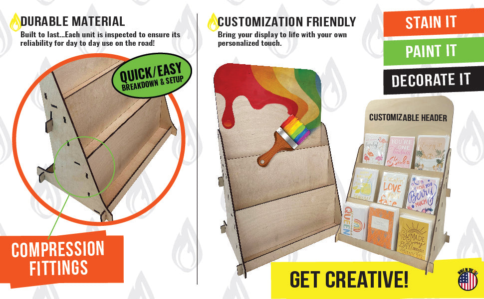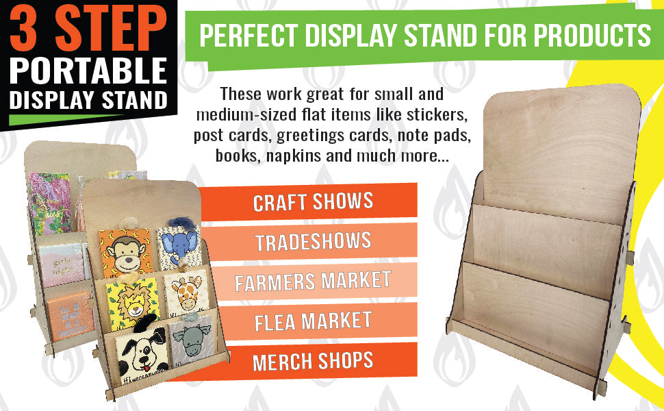 Introducing the 3-Tier Greeting Card Counter Display Stand, a versatile and multipurpose wooden display rack designed to showcase a variety of products. Whether you're at a farmers market, trade show, pop-up shop, or any setting where you need an organized and eye-catching display, this stand has you covered.