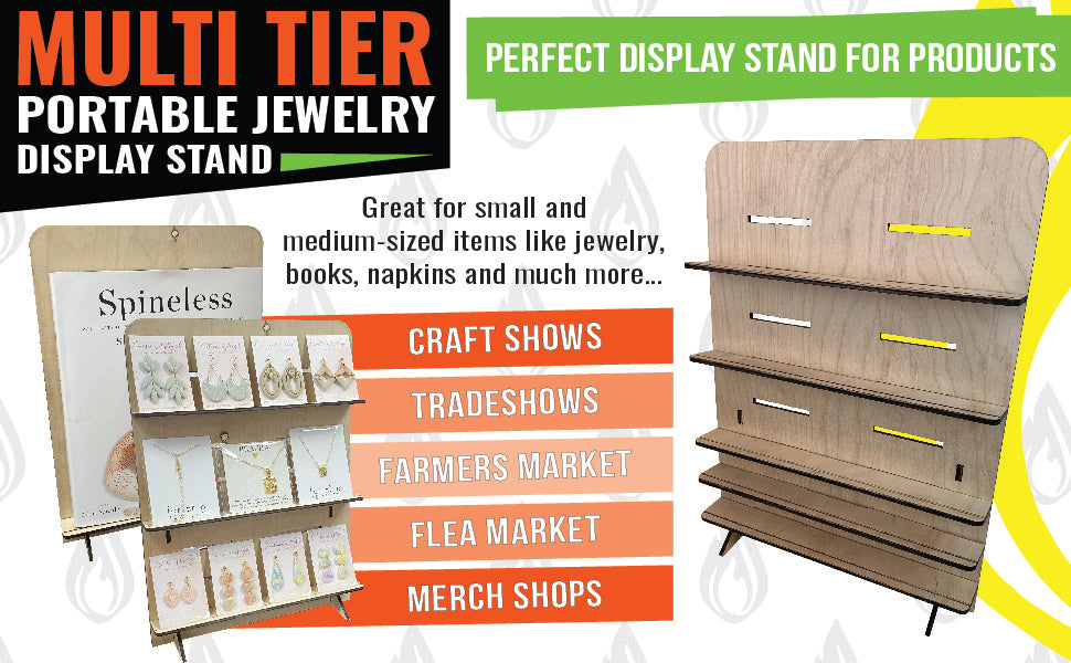 At its core, this stand offers a three-tiered design, allowing for efficient organization and presentation of your jewelry collection. Whether you're setting up shop at a festival or a boutique, this stand's multi-tiered design offers a captivating way to display your items.