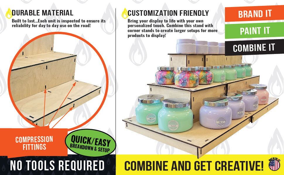 Setting up the display is a breeze, thanks to the easy snap-together assembly. No hardware or tools are required, saving you time and effort. Not only does this display stand offer a stylish presentation, but it also provides convenient internal storage in the back. You can keep extra inventory, supplies, or packaging materials organized and within reach, ensuring a seamless selling experience.